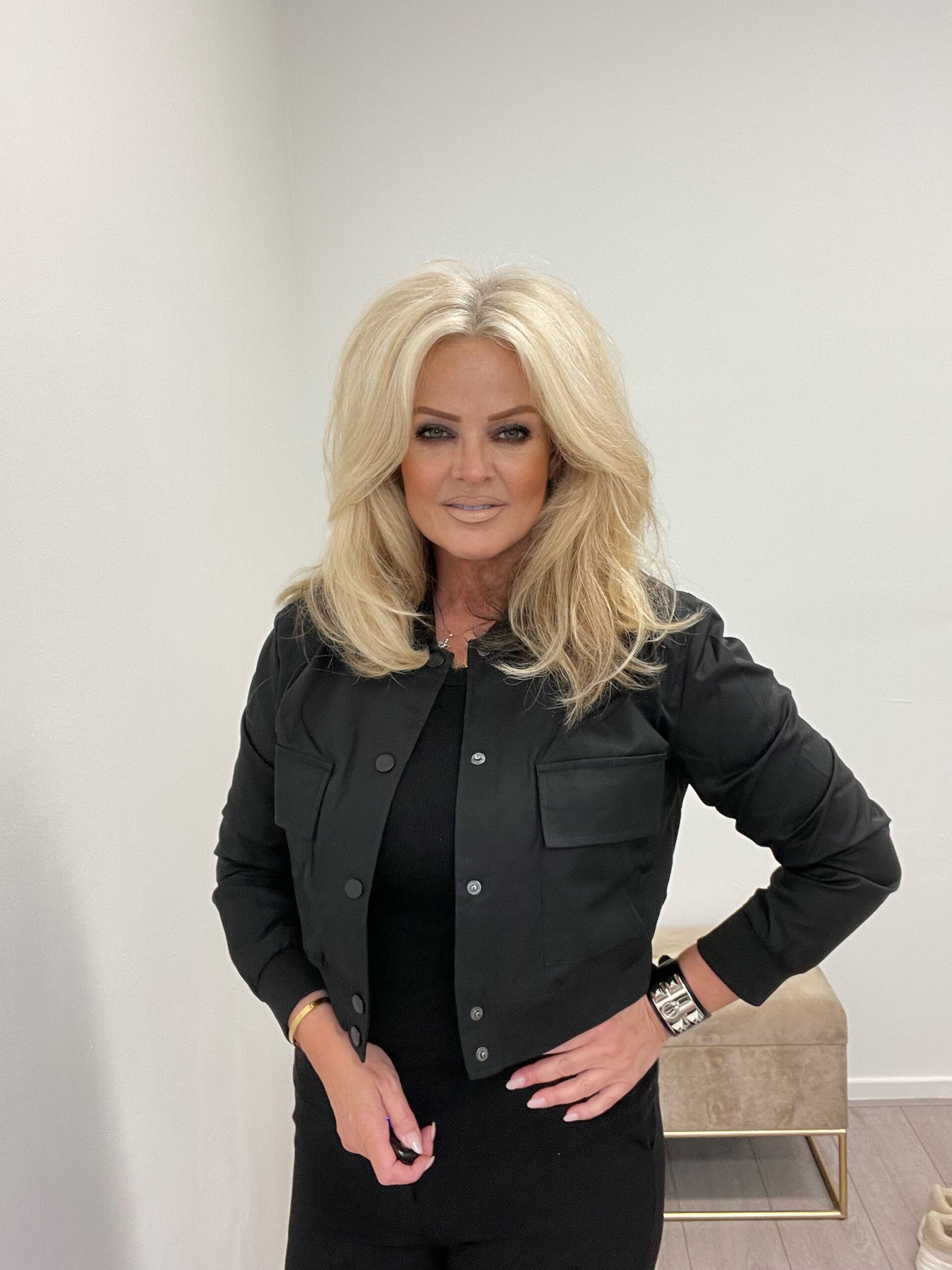 Dit bomber jasje is de bom! Gedetailleerd met opgestikte zakken en een ronde hals. Drukknopen en gevoerd. Mooie gladde stof