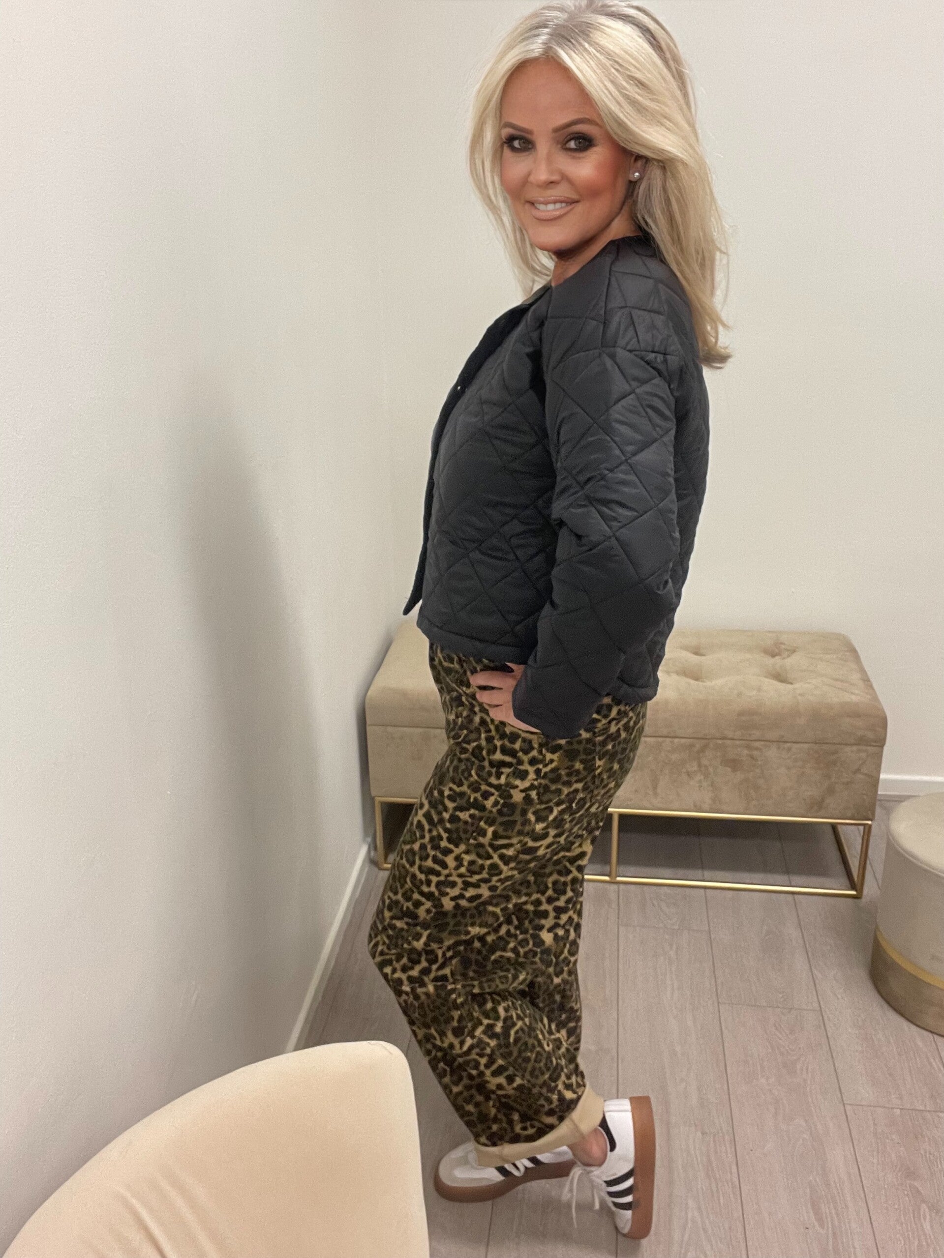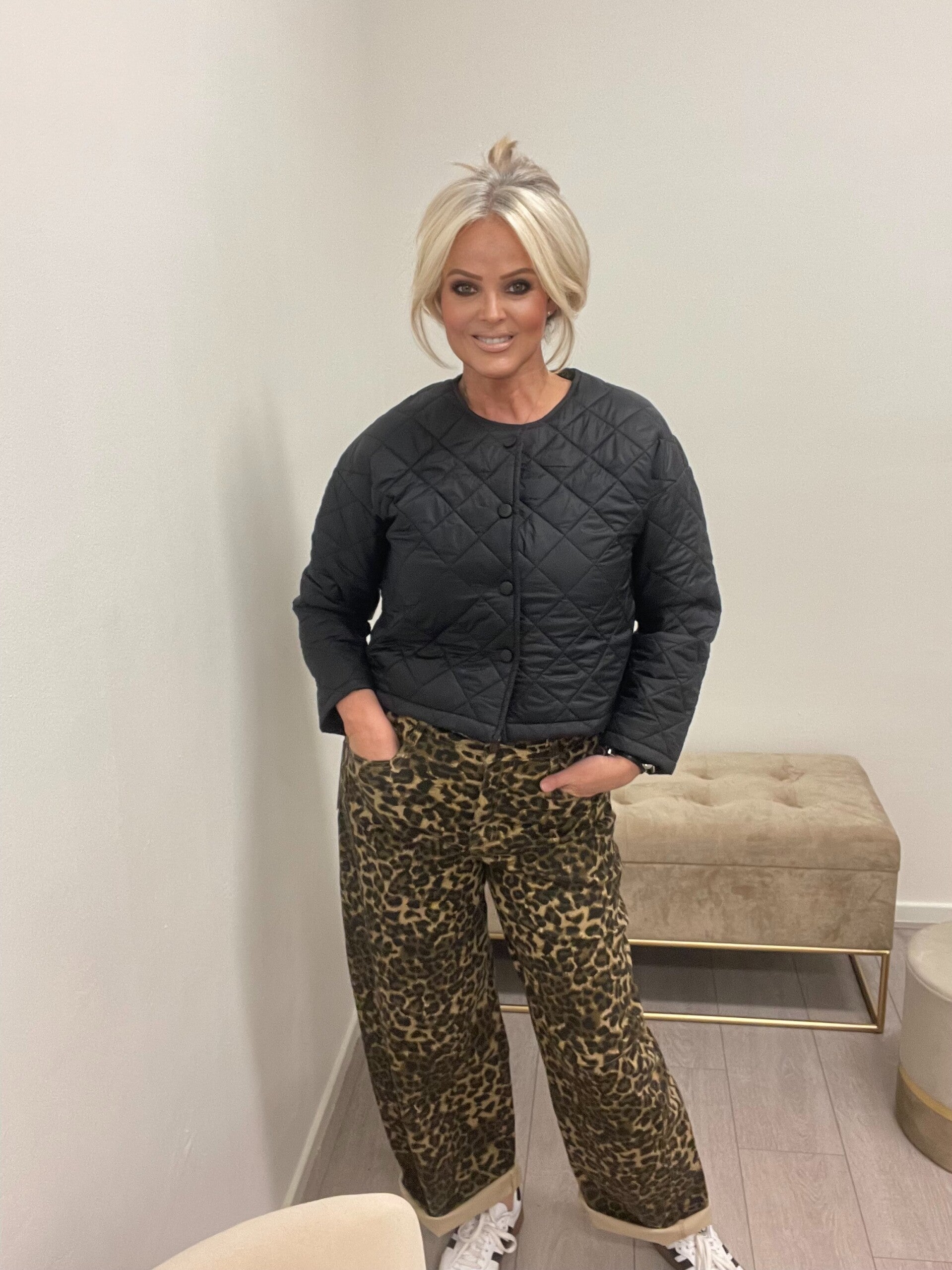 Deze nieuwe balloon denim in luipaard print, echt geweldig! Zachte denim stof met steekzakken, achterzakken, rits en een knoop. Neem voor n baggy look 1 maat groter.